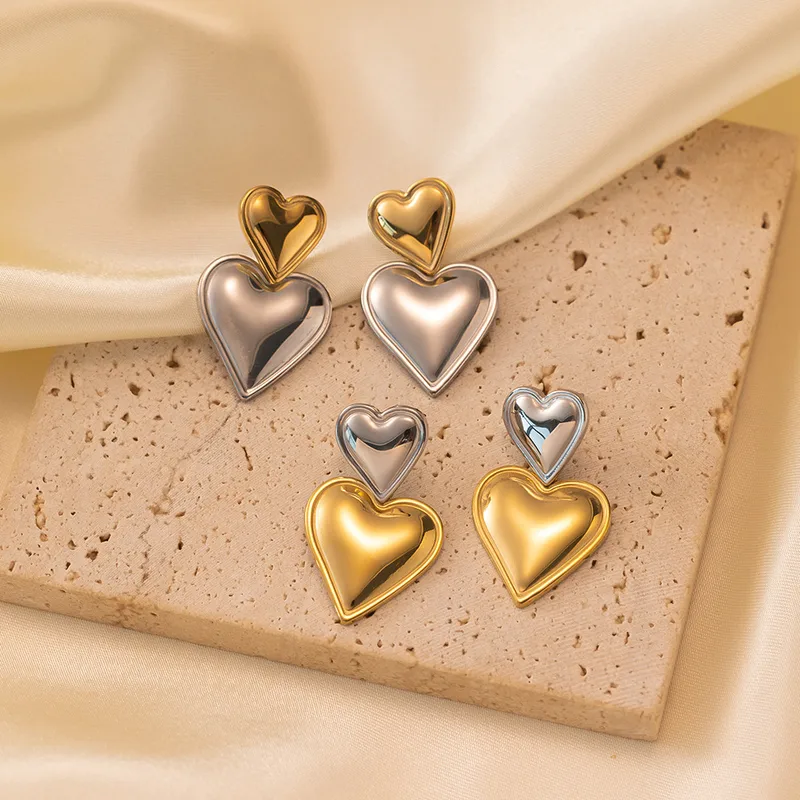 Aretes de pin, acero, colgar, corazones