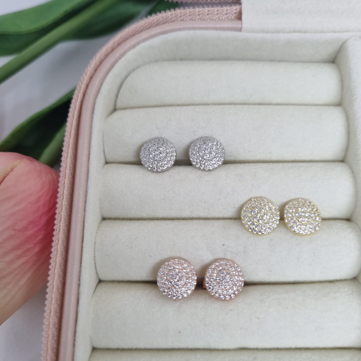 Aretes de pin, circulo de circonias, plata
