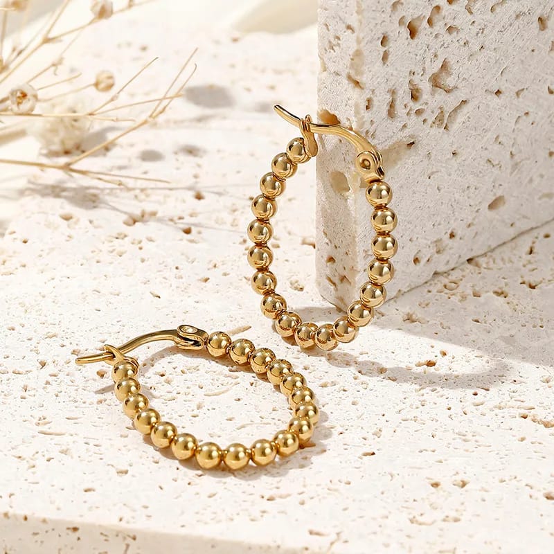 Argollas de trabador, acero dorado, bolitas, 3.3cms