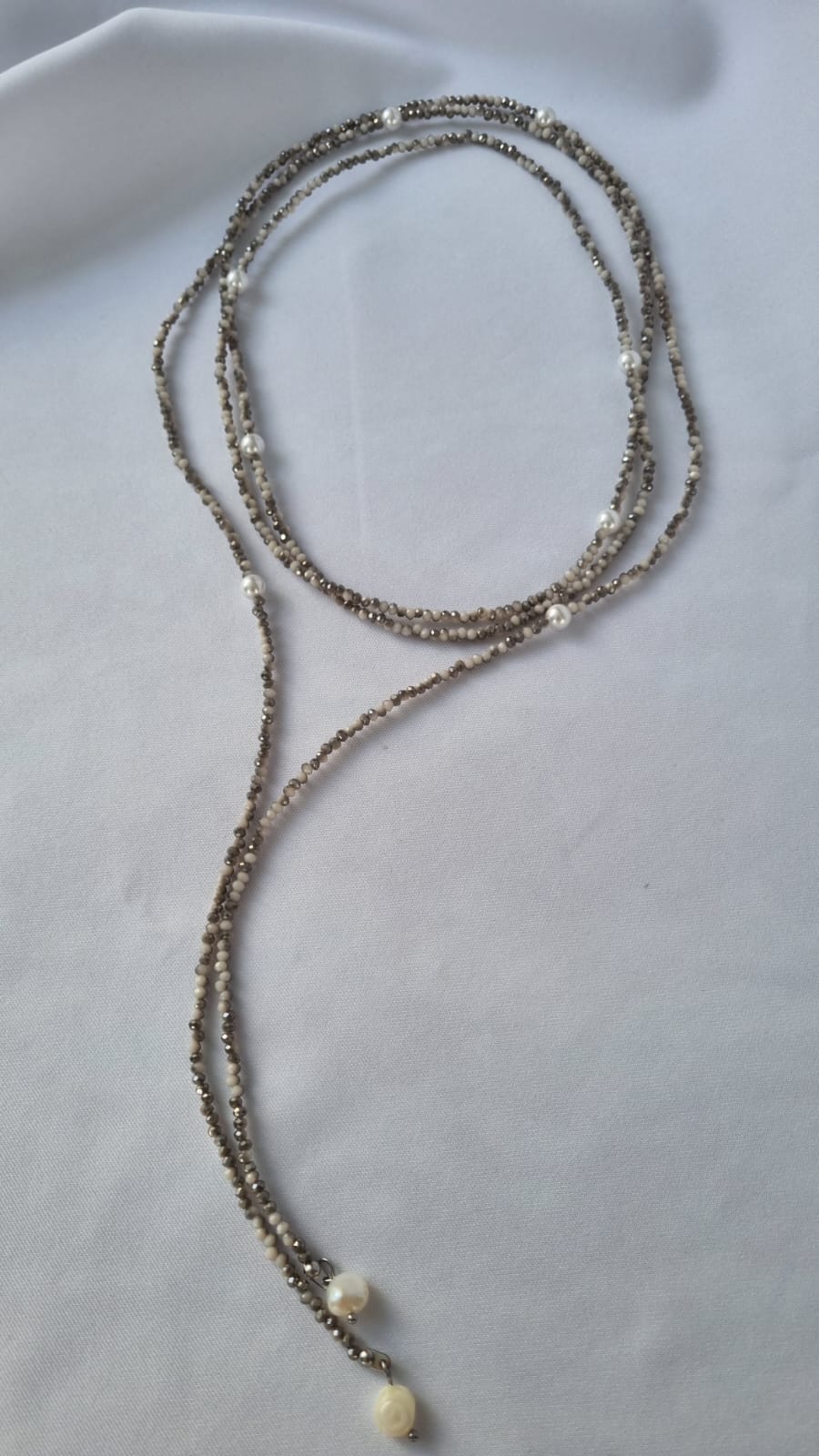 Gargantilla larga multiusos, cristales y perla, color nude manchado
